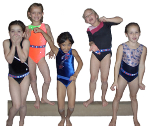 | The multi colored elastic belts are warn around the waists of the girls, with a different color for each skill level. They will provice a professional looking appearance for each of your groups. It is so professional to look out over the gym and see the different levels of students in their groups.